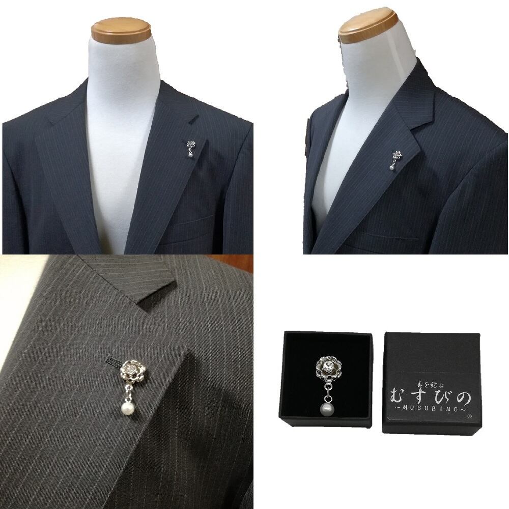 ラペルピン アクセサリー 日本製 バラ 薔薇 ピンズ ブローチピン ブローチ タックピン ギフト チャーム パール 美を結ぶ むすびの MUSUBINO 19062-TKP01