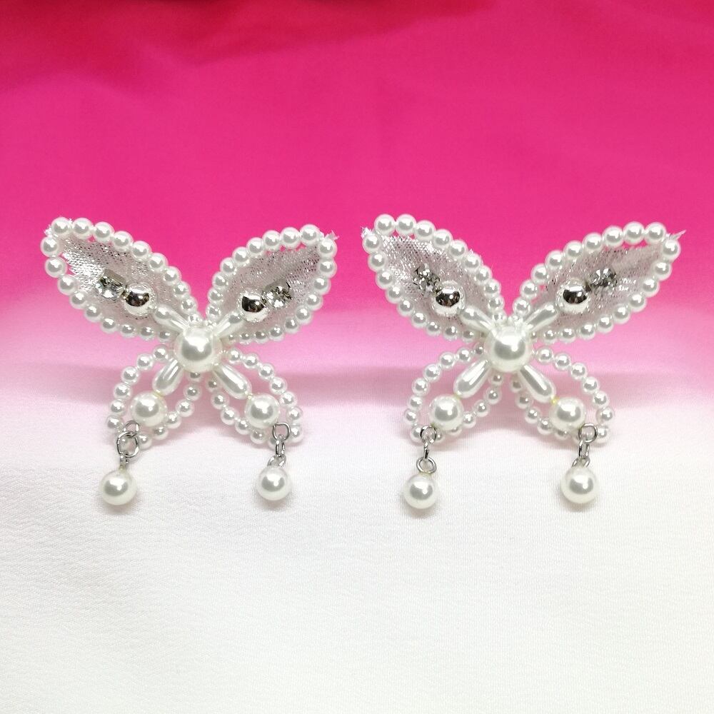 パールとラインストーンを使ったUピンタイプの髪飾り。