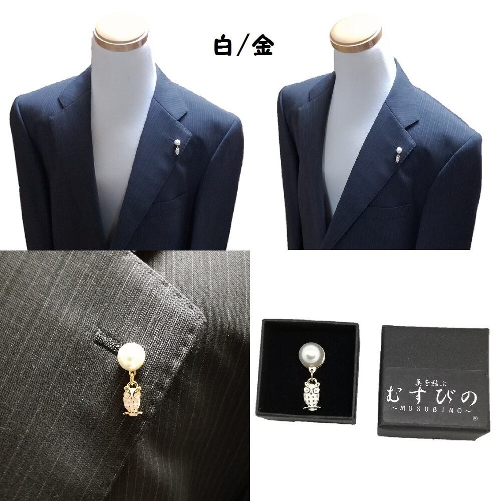 ラペルピン アクセサリー 日本製 ふくろう 梟 ピンズ ブローチピン ブローチ タックピン ギフト チャーム パール 美を結ぶ むすびの MUSUBINO 19078-TKP01