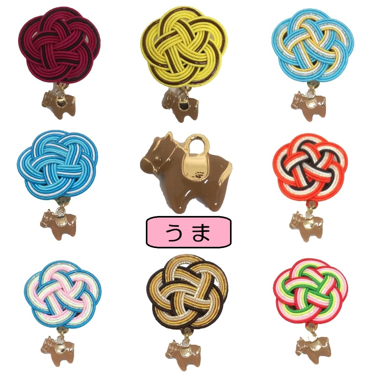 帯留め 帯飾り 着物 水引 日本製 干支 午 馬 うま ウマ 幸運 ラッキー 和装 和装小物 三分紐 レディース 美を結ぶ むすびの MUSUBINO 20011-OBD01-UMA01
