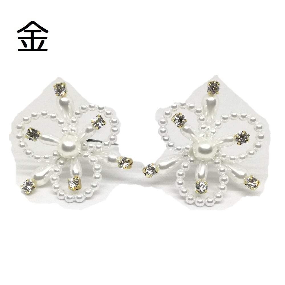 パールとラインストーンを使ったUピンタイプの髪飾り。